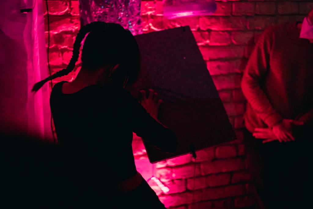 At the end of the residency, artists turned PAIKKA’s project space on Kertész utca in Budapest into an immersive installation accompanied by performances.